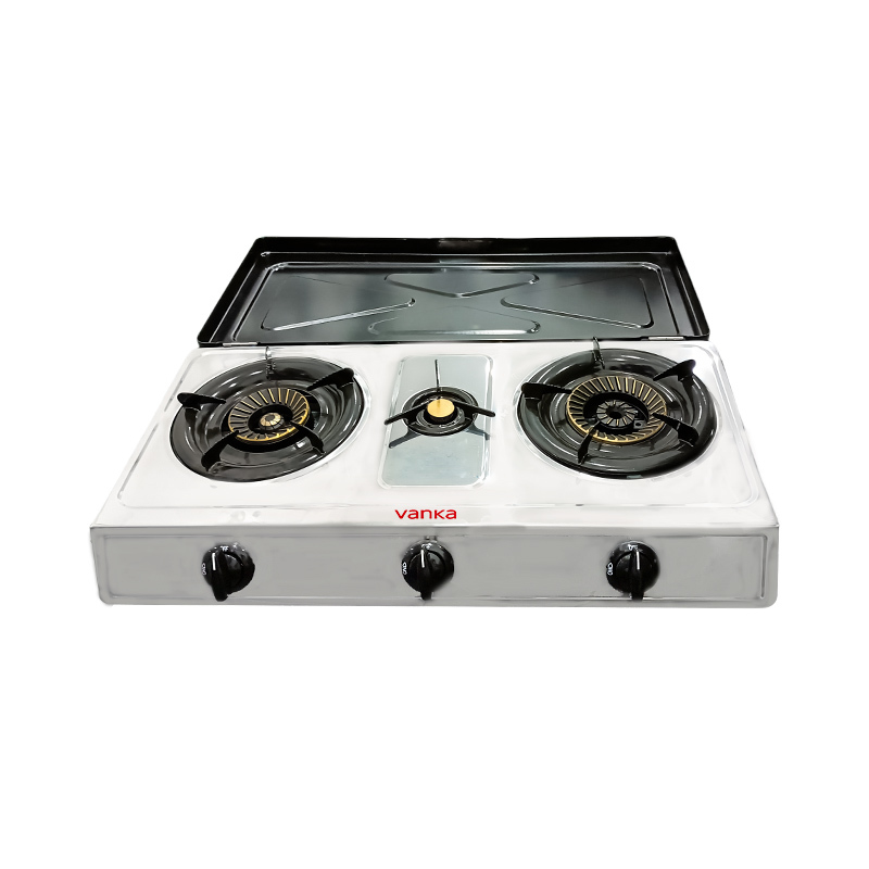 اجاق گاز رومیزی استیل ضد زنگ 3 شعله با روکش برای استفاده در آشپزخانه